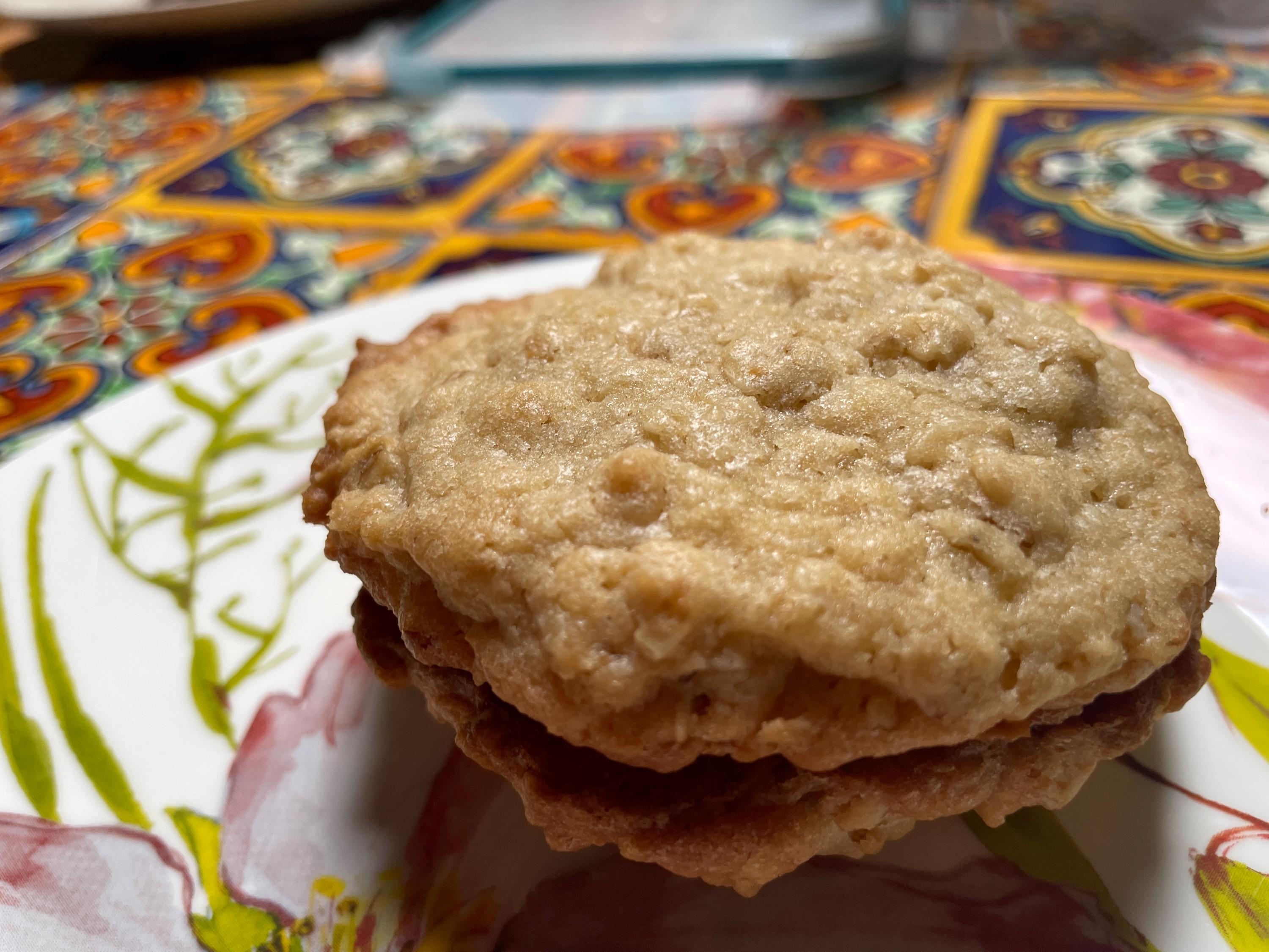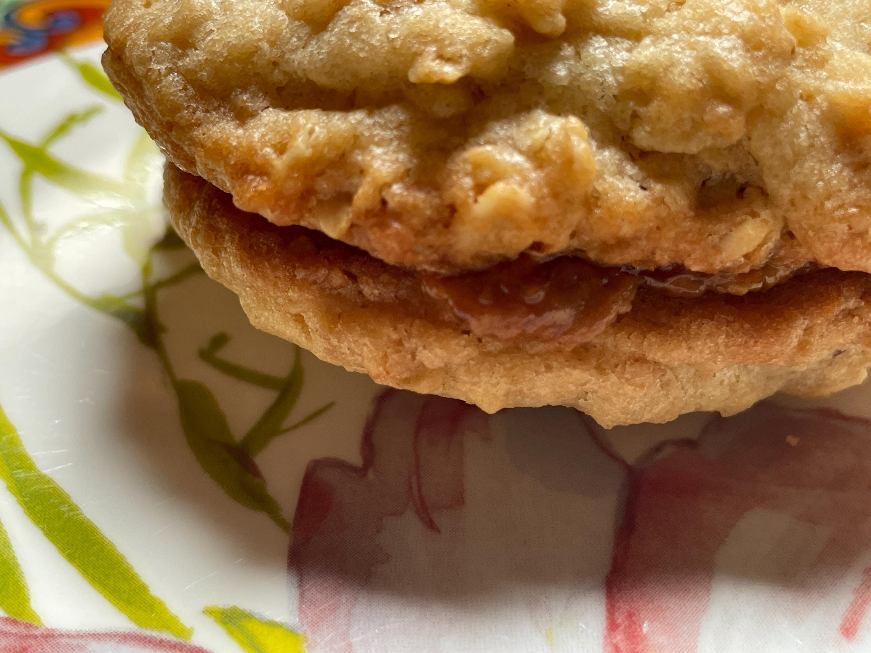 Fresh out of the oven! Delicious oatmeal cookies. Fresh, nutritious oats in every cookie. Sandwiched in between are a choice of the most delightful fillings, of jams and spreads. Many varieties. Satisfy your cookie cravings. Chewy. Irregular, hand-made appearance assures you it's made from scratch. Quality, natural ingredients for your family's health. We focus on the ingredients and here you have a thick, sticky, delicious sandwiched treat. Simple packaging to keep costs low and we pass on the savings to you. Dimensions may vary slightly among pieces. Approx. 1 pound per 6 cookies. Shipping out from our end, Monday through Wednesday to ensure you receive goods fresh.