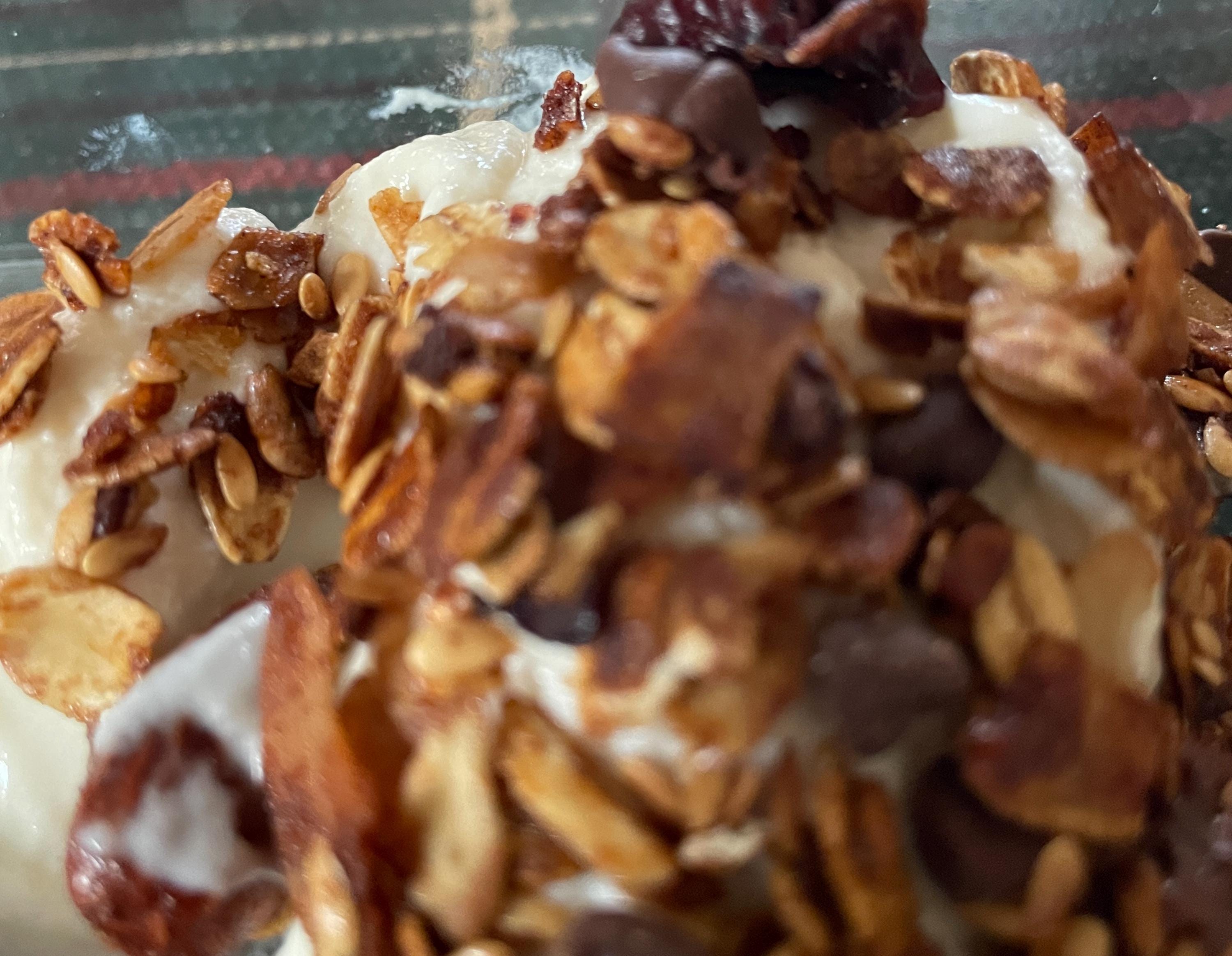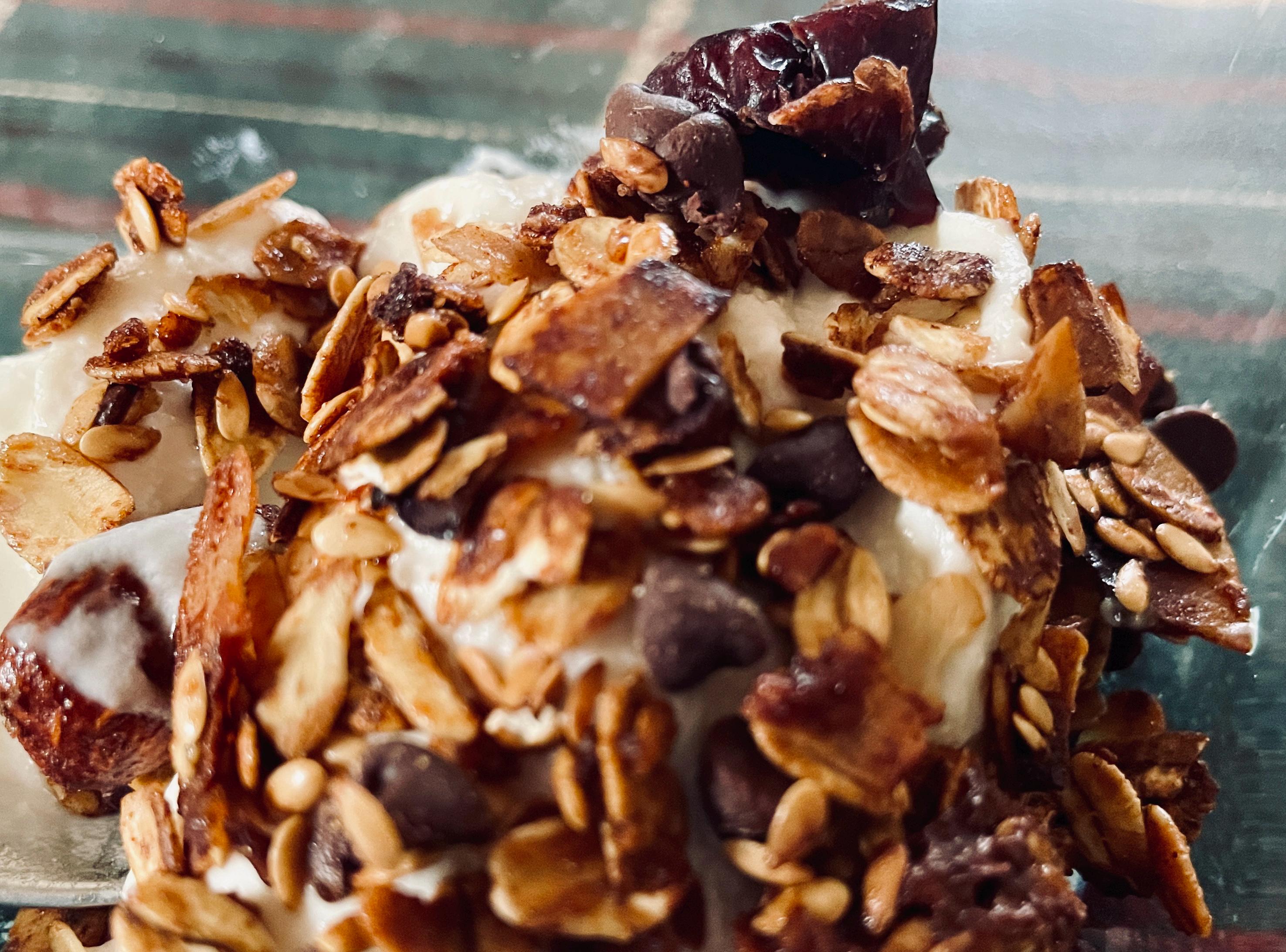 Crunchy granola with a gorgeous, honeyed, warming flavor. Robust almonds, healthy oats and crisp seeds complement the sweet accents from the cranberries. Excellent as a topping on yogurt or milk, if preferred. Can also be enjoyed by the handful on movie night.